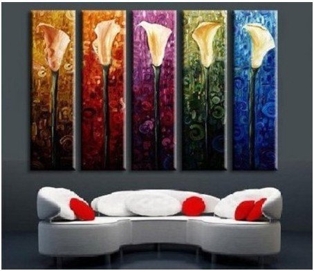 100% Hand Painted Modern Abstract Oil Painting On Canvas Wall Art Deco Home Decoration Calla Lily 5 Pic/Set Stretched Ready To Hang